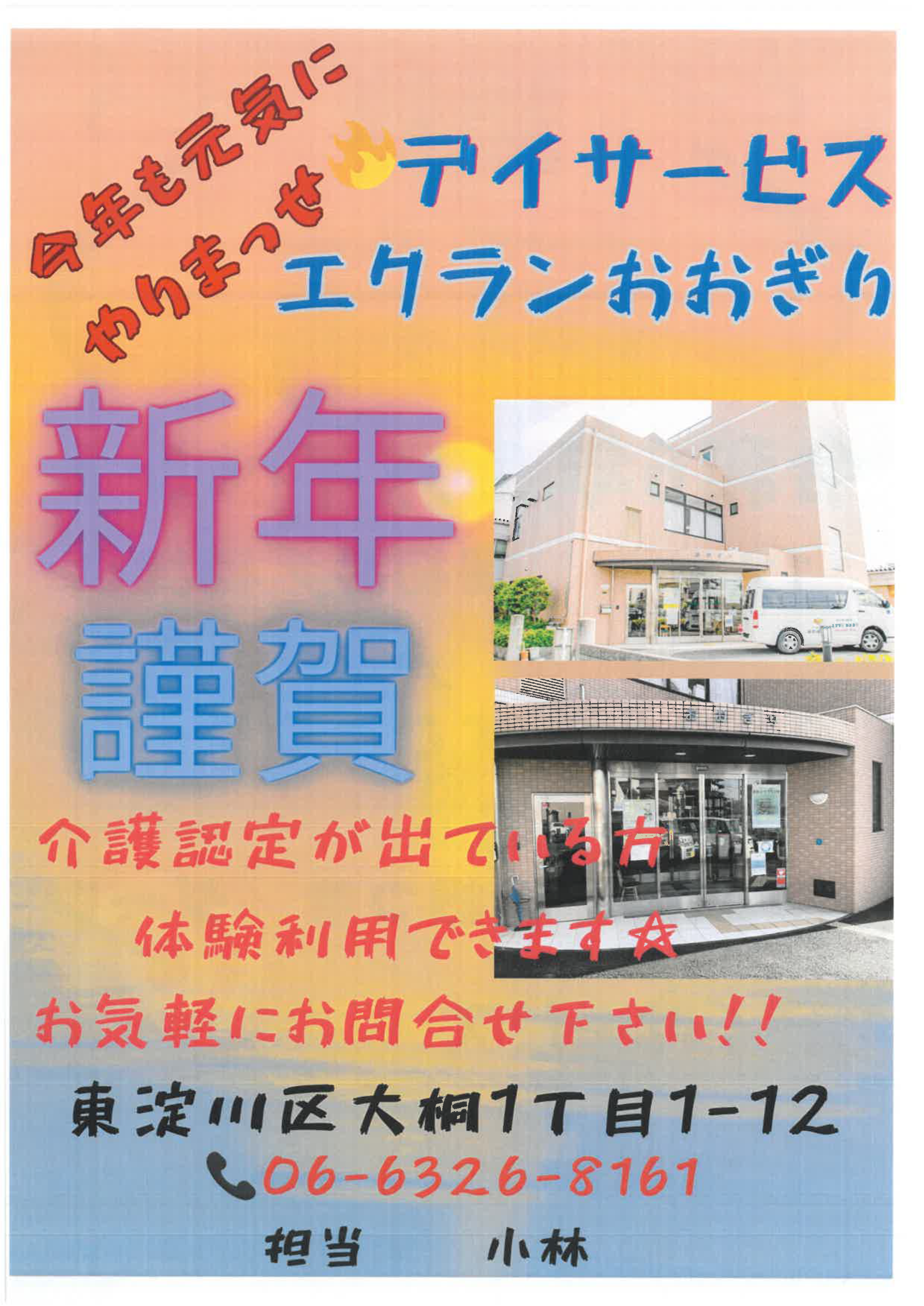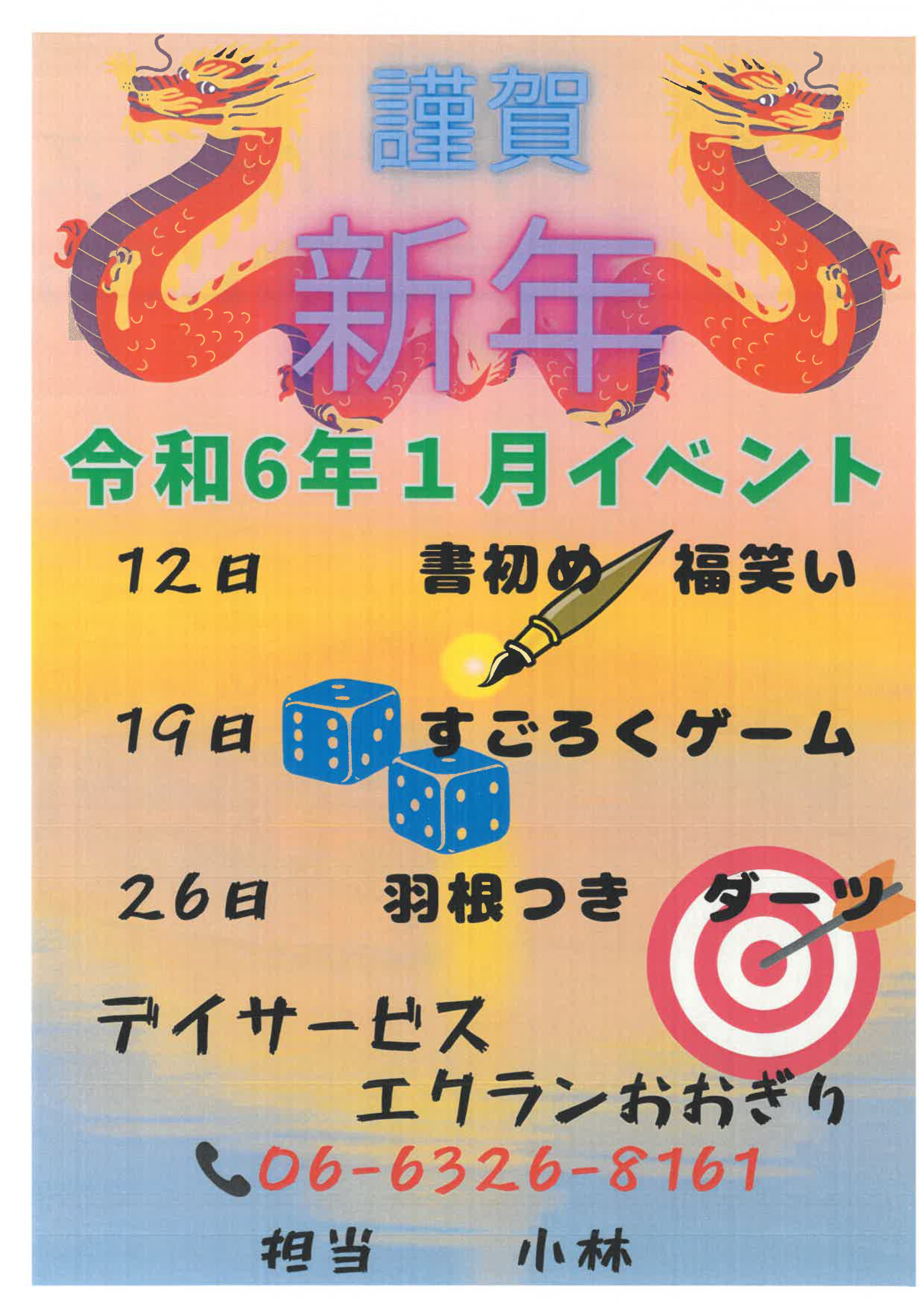 デイサービス エクランおおぎりでの新年1月開催予定のイベント一覧です。